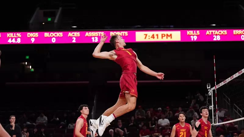🔼 Ranked Wins. The No. 4 men’s volleyball team swept No. 14 Stanford 3-0 on Friday. Three Trojans scored double-digit points. Dillon Klein led all players with 19.0 points. The men beat Stanford again on Saturday 3-1. This marked the team’s eighth straight win. Klein had 20 kills and finished with 24.5 points.