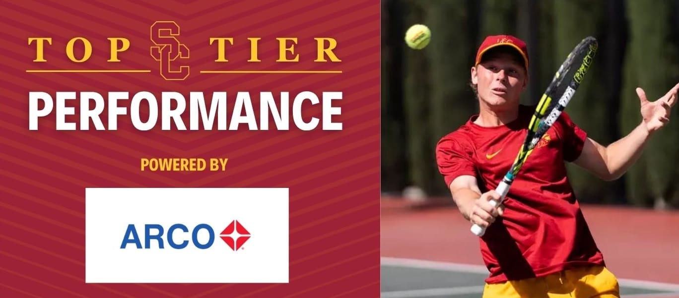 Today’s Top Tier Performance presented by ARCO is Max Exsted. Exsted earned his fourth Big Ten Freshman of the Week honor. Through the spring season, Exsted leads USC in Big Ten singles wins (7) and owns the team's highest overall singles winning percentage at 13-2 (.866), highlighting his consistency and impact in his debut campaign.